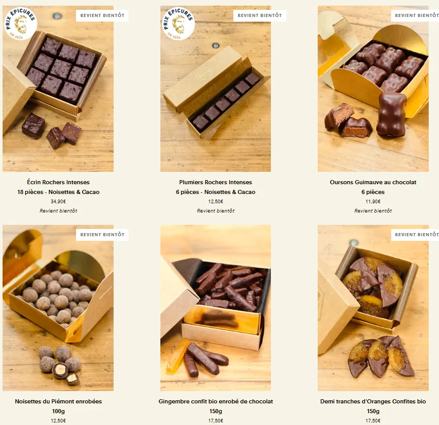 Cela peut être une idée de cadeaux pratique en dernières minutes. Encuentro propose bien sûr une collection pour les fêtes. Mendiants, fruits confits enrobés de chocolat, guimauves, rochers et les tablettes ! C'est la marque de fabrique d'Encuentro.