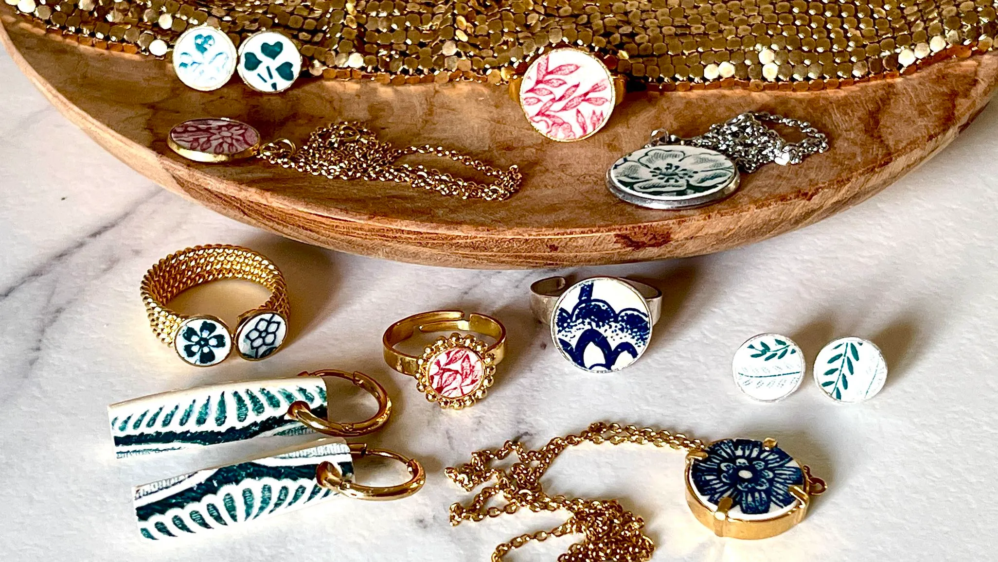 Marjorie créé des bijoux originaux à partir d'assiettes anciennes