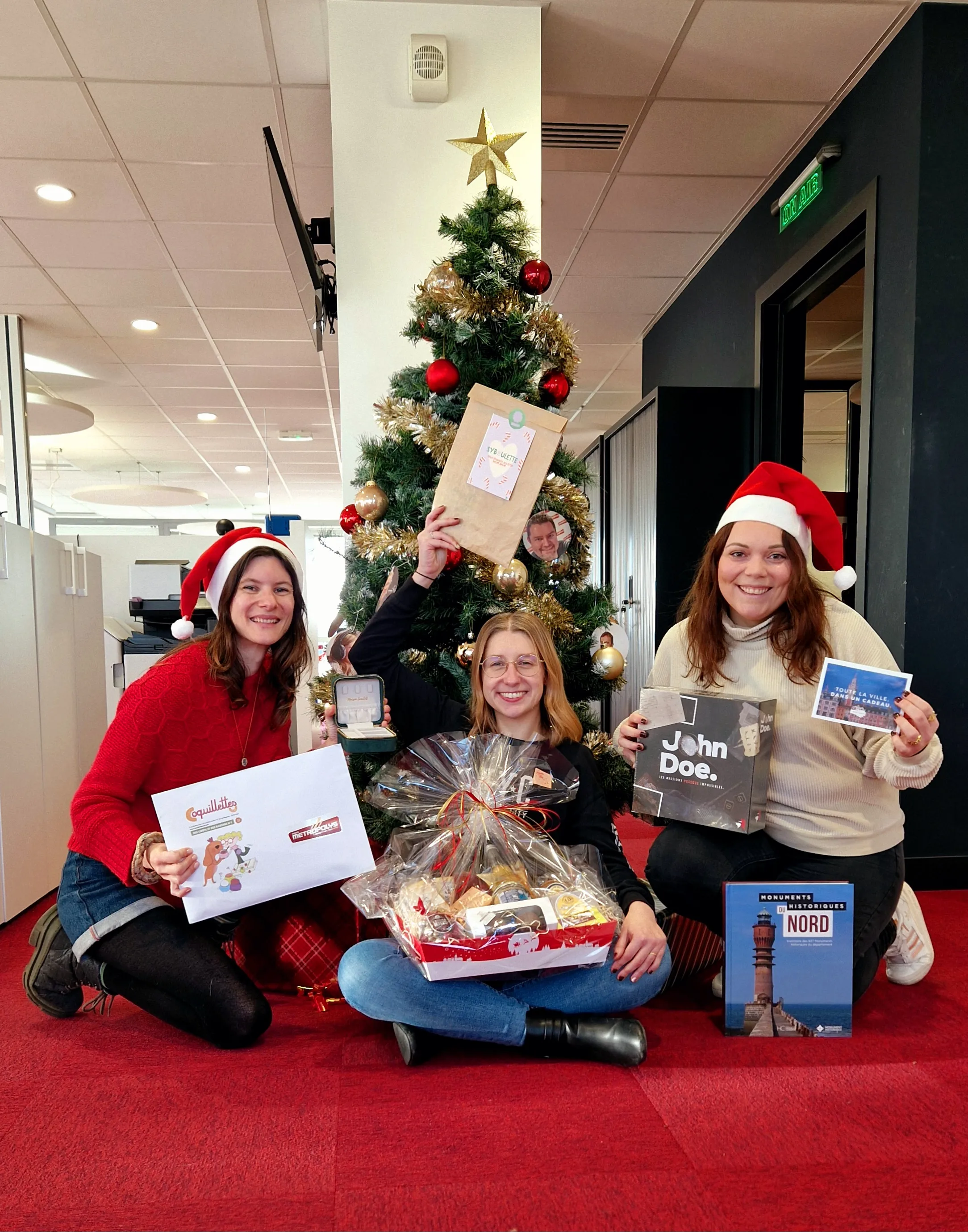 La carte cadeau Lille créditée de 50 €, une affiche de Syboulette, un atelier créatif et culinaire à faire en famille avec Coquillettes Club, une boîte à bijoux Maison Scarlette, le livre des Monuments Historiques du Nord, un jeu de société John Doe et un panier garnier offert par les Compagnons des Saisons avec plein de bons produits locaux sucrés et salés.
