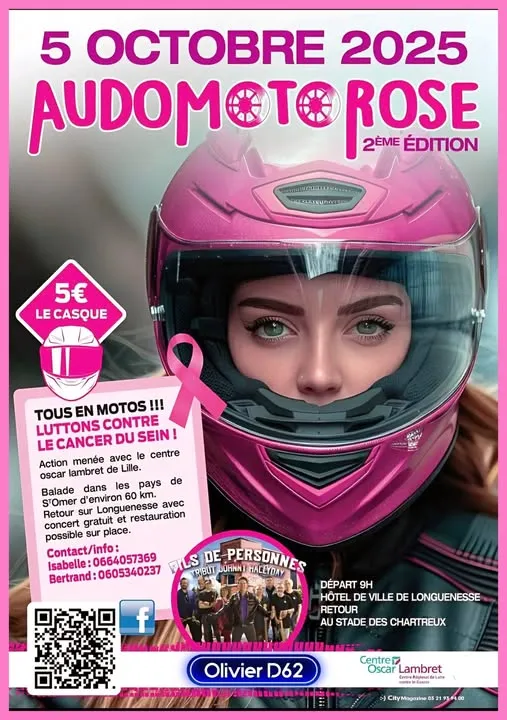 D'abord, la 2ème édition d'Audomotorose, un rassemblement solidaire de motards, au départ de la mairie de Longuenesse, le 5 octobre à 9 h.
