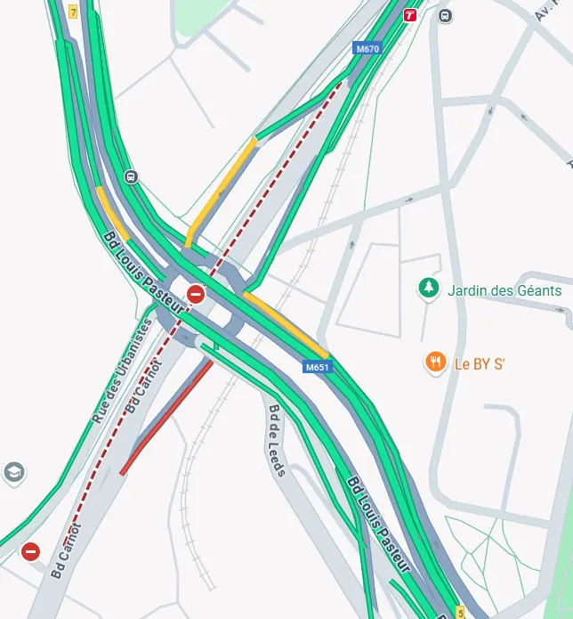 Les automobilites sont déviés vers le carrefour Pasteur (vers le Vieux-Lille) et peuvent rejoindre le centre via la rue des Urbanistes et la rue des Canonniers.