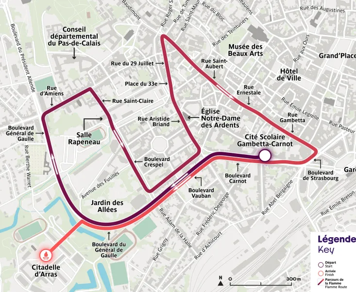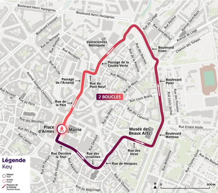 > Entre 15h30 et 17h ce dimanche 25 août, la flamme fera une boucle de Relais de 2,5km grâce à 24 éclaireurs. Depuis la place d'Armes en passant par le musée des Beaux-Arts, le boulevard Pater, passage de la coulée verte ou encore la rue de la Paix.