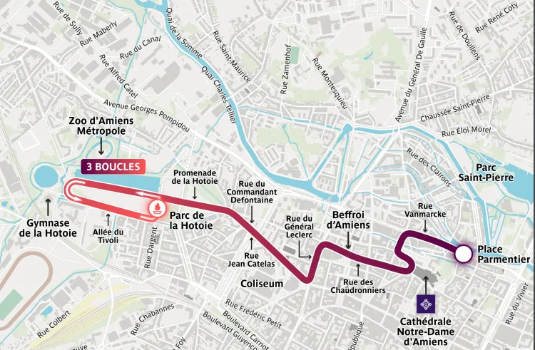 > Départ de Arras ce lundi 26 août depuis la cité scolaire Gambetta-Carnot à 8h30, Boulevard Vauban, le jardin des Allées, rue d'Amiens, boulevard Crespel, rue du 29 juillet, rue Gambetta, pour une arrivée à 10h10 à la Citadelle d'Arras.