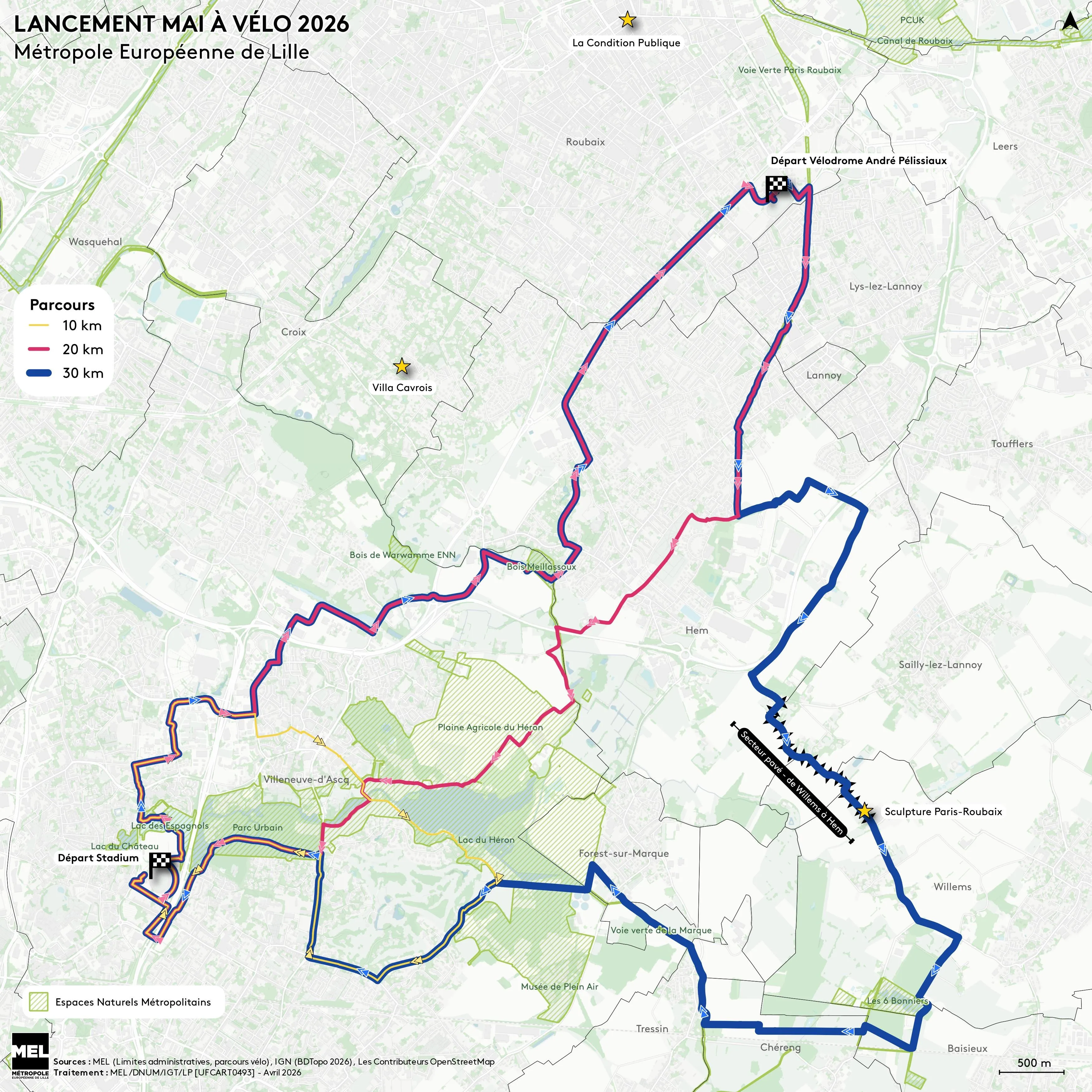 Plusieurs animations et randonnées sont notamment organisées le 2 mai, depuis le Vélodrome de Roubaix et le Stadium Nord, à Villeneuve d'Ascq.