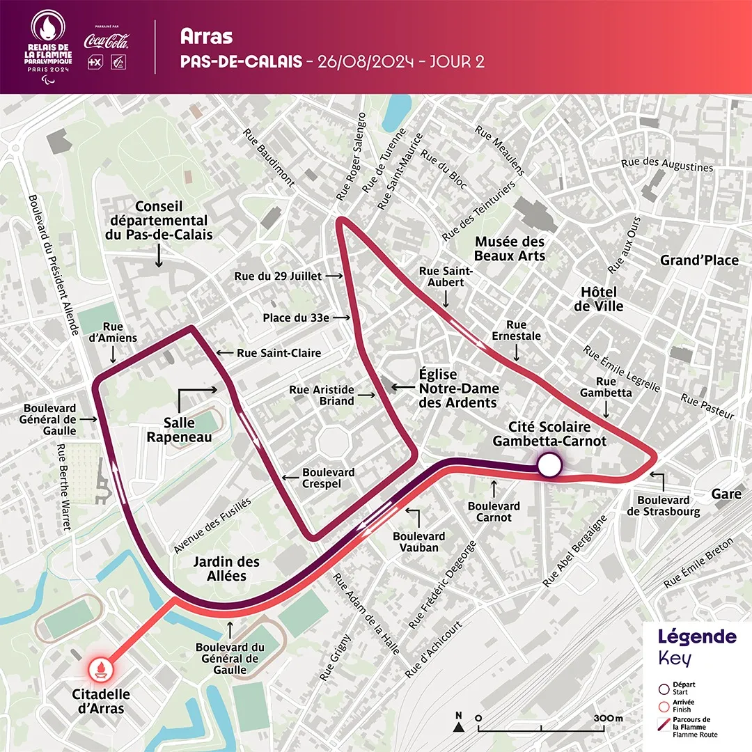 Ce lundi 26 août, elle parcours la cité arrageoise, avant le lancement des Jeux Paralympiques, ce 28 août.