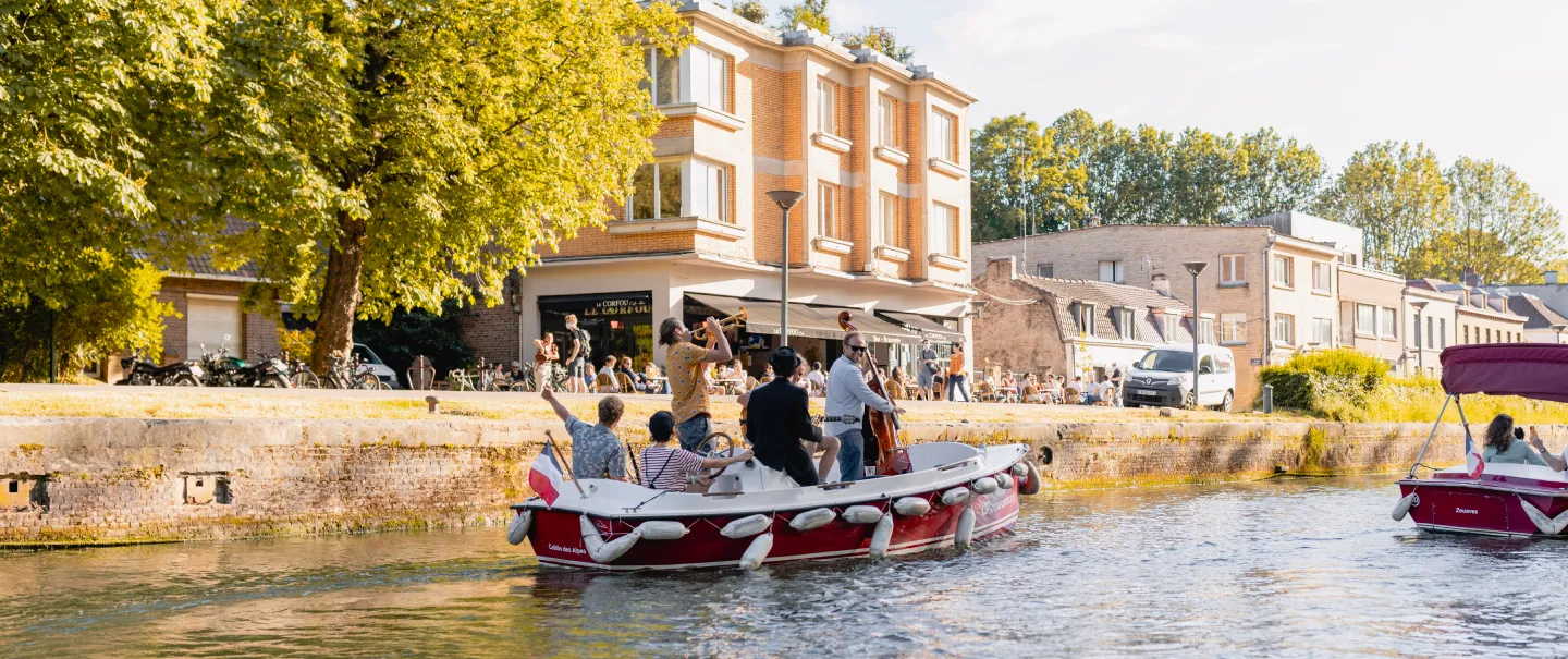 > A Douai, de la barque électrique sur la Scarpe. Du mercredi au dimanche les après-midi, Rdv à l'embarcadère du palais de justice. De 4 à 6€. Le weekend des apéros sur l'eau sont même proposés par les restaurateurs douaisiens.