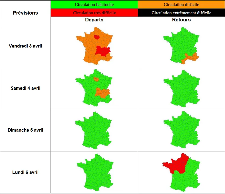 Les conditions de circulation pour ce week-end de Pâques