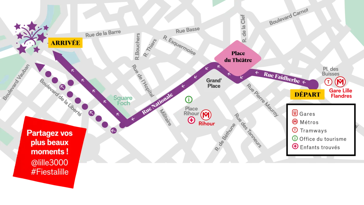 Elle débutera vers 19h30, depuis la gare Lille Flandres, pour 1,3 kms de parcours.