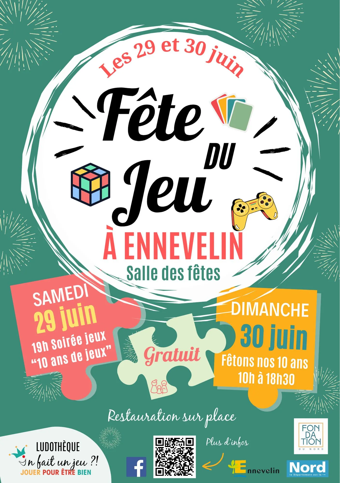 Rendez-vous à la salle des fêtes pour célébrer les 10 ans de l'association "On fait un jeu?!" Jeux de société, jeux en bois, chasse au trésors, géocaching, rétro gaming et bien d'autres animations vous attendent.