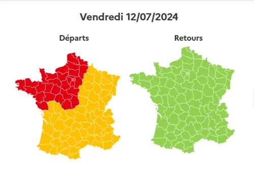 - 12 juillet : carte orange à l'échelle nationale et route en Ile-de-France, dans le Nord et le Grand Ouest.