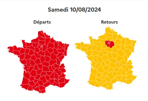 > Pour les retours : ils devraient être fluides puisque c'est vert partout, sauf en région parisienne, encore une fois en rouge.