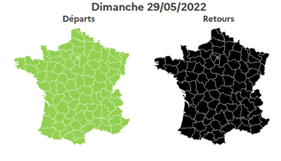 Un dimanche noir, le pire indicateur, est annoncé pour les retours ce 29 mai. L'idéal et de regagner les grandes villes avant midi.