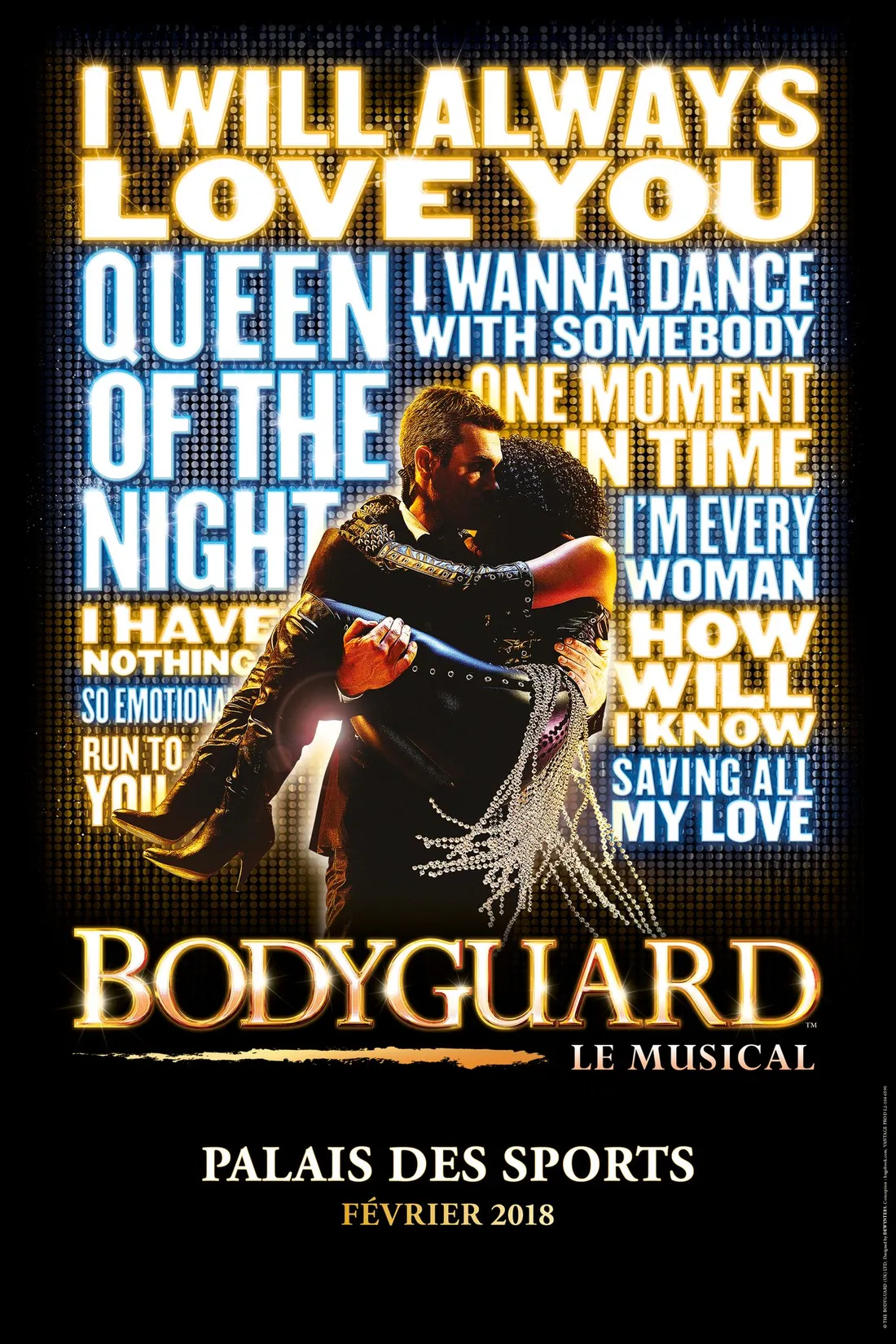 Après avoir triomphé à Broadway, la comédie musicale "Bodyguard" arrive en France ! Cette adaptation du film avec Whitney Houston et Kevin Costner sera au Palais des Sports de Paris en février 2018, puis dans toute la France. Au programme : 16 morceaux dont l'incontournable "I Will Always Love You". Sur scène, on retrouvera 35 chanteurs, comédiens et danseurs.