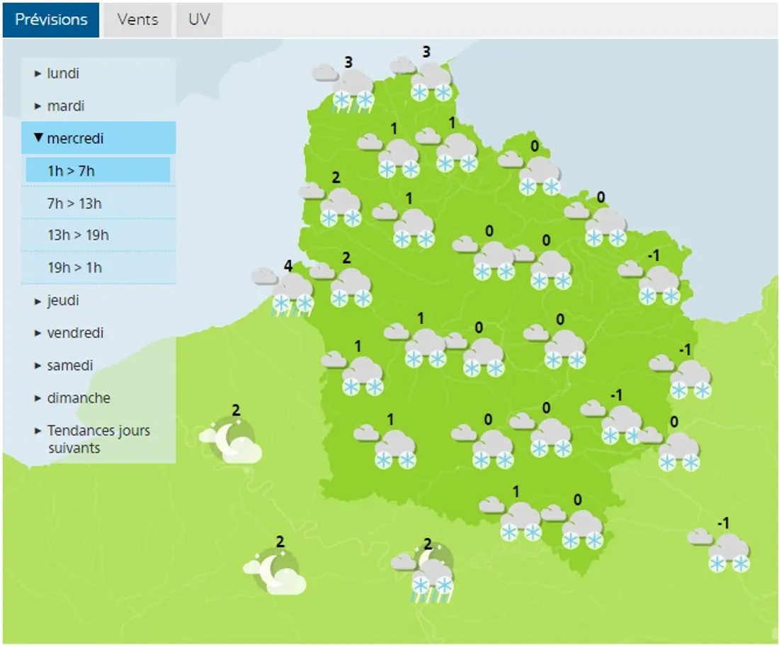 Par contre, l'épisode devrait être moins virulent que celui de la semaine dernière car les températures vont un peu remonter ce mercredi, avec en moyenne 2 à 4 degrés.