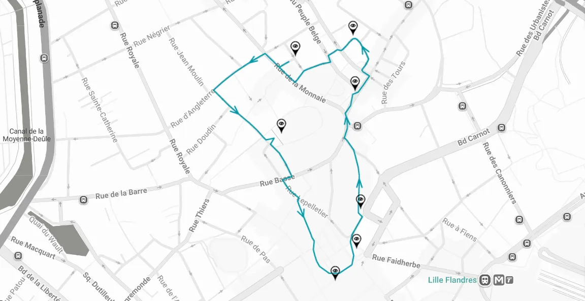 La Cathédrale Notre-Dame de la Treille, l'Opéra, le siège de La Voix du Nord, la tour du Palais de Justice, mais aussi la Place Louise de Bettignies, Les Petits Poissons et le Café de Paris.