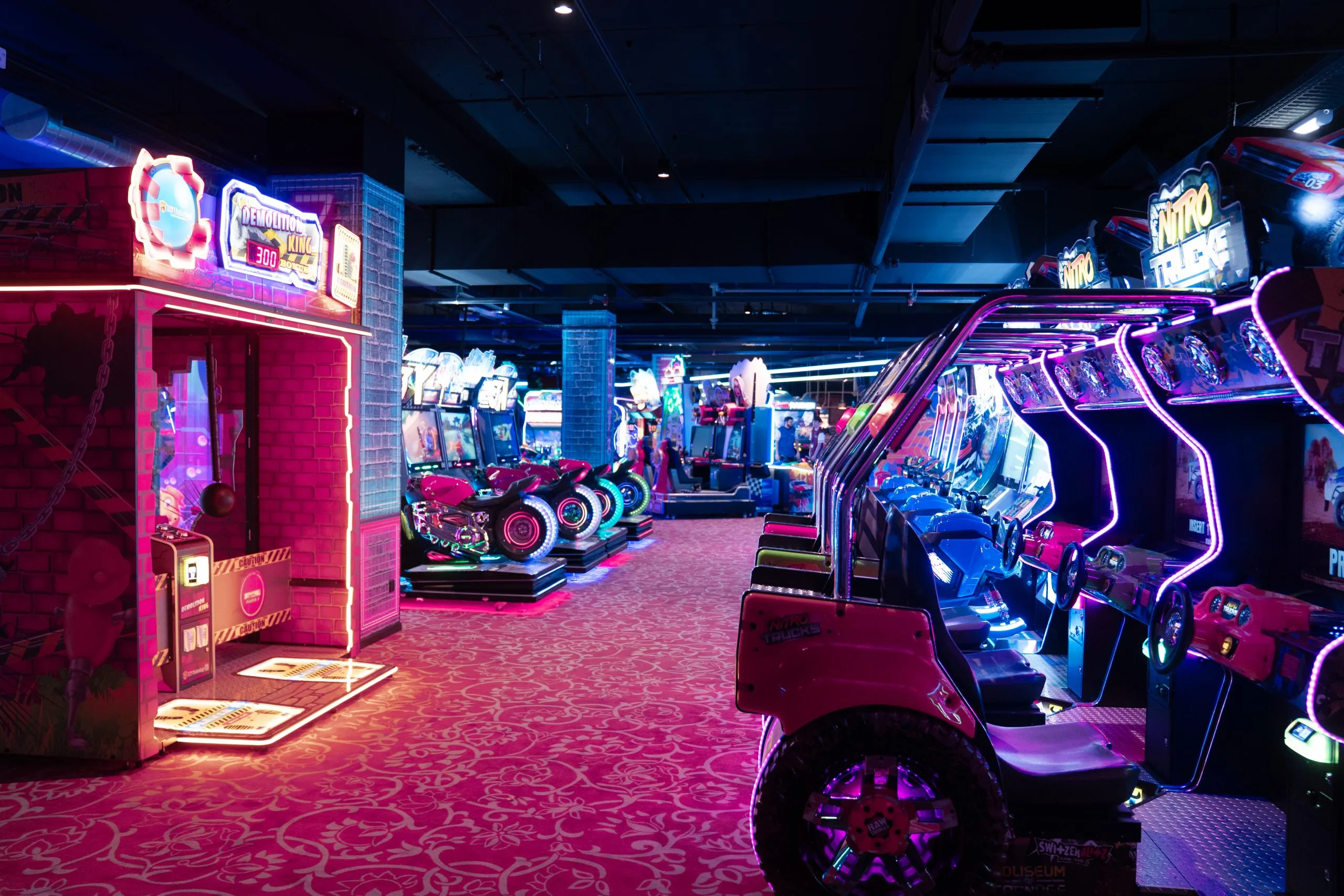 Qu'est-ce que vous ne trouverez pas dans cet immense complexe indoor ? Tout y est : bornes d'arcade, flippers, billards, bowling, VR, fléchettes, salles de karaoké ou encore trampoline !